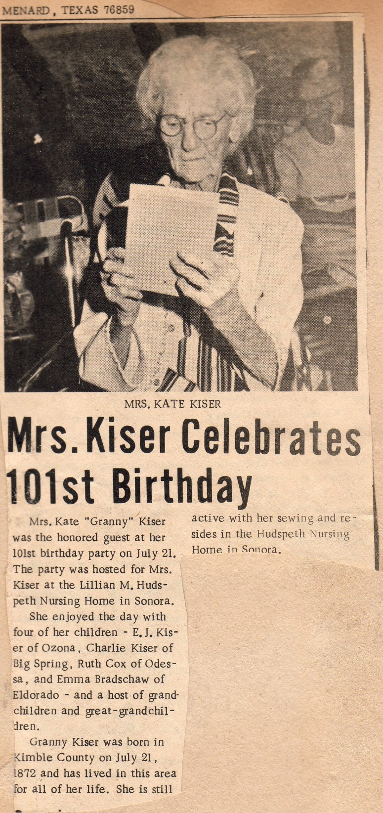 Kate Kiser 101st birthday