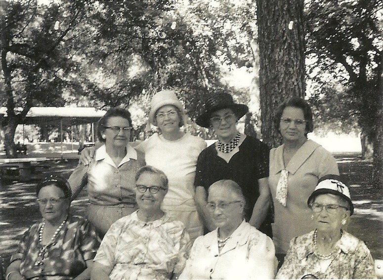 I think I know who some of these ladies are. Top row, 2nd from left is Cuba (Wood) Petross and next is Myrtle (Wood) Bagley. On the bottom row, the first lady on the right is Pearl (Wood) Poynor Thomas. They are my great great aunts, the daughters of George Edward Wood & Mary Pamelia (Miller) Wood.